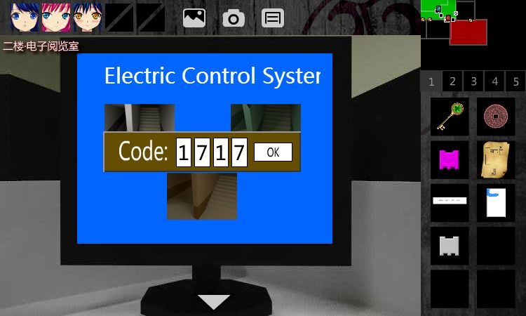 回到2F•电子阅览室,把下侧的电网控制系统(2F•中廊)输入1717解除。