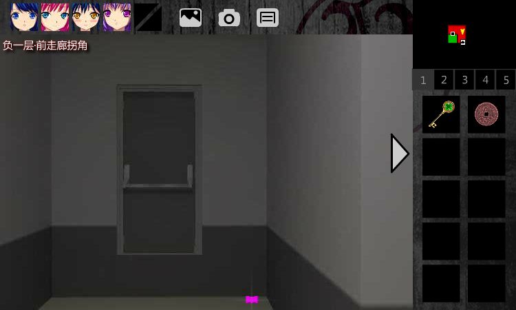 点击B1,进入-1F•前走廊拐角,左转,获得【品红色方块】(中部)。