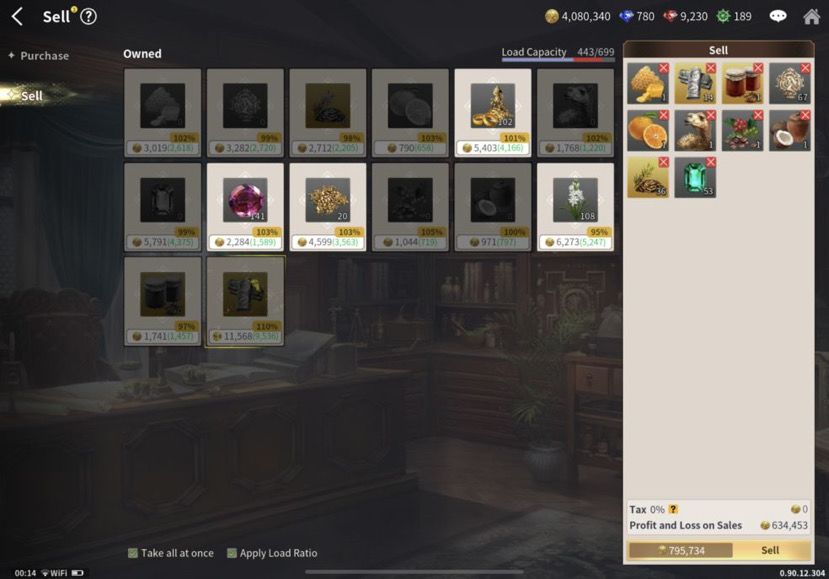 汉堡买入首饰,铃兰,布,啤酒。 多余仓位,可以隔壁买弓 皮毛,或者随便补货。