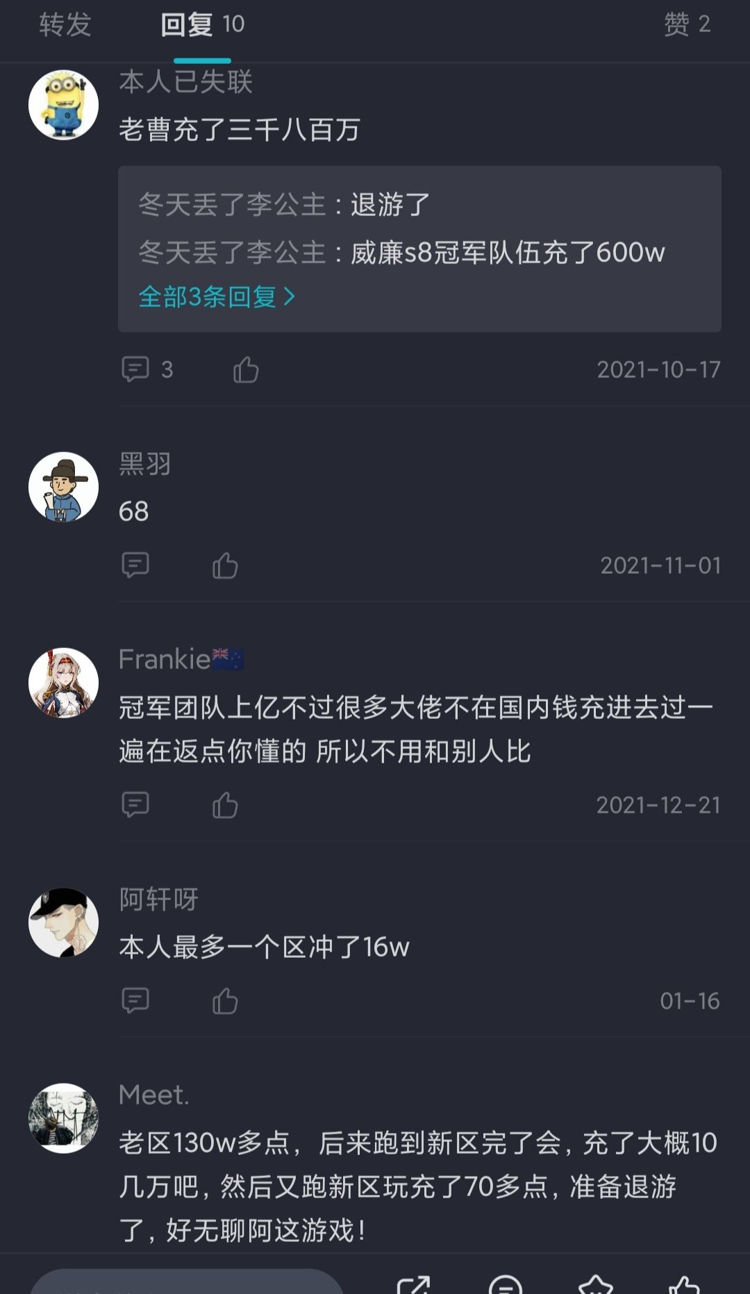 帖子内的回复,这才叫氪佬,对比下就没有伤害了