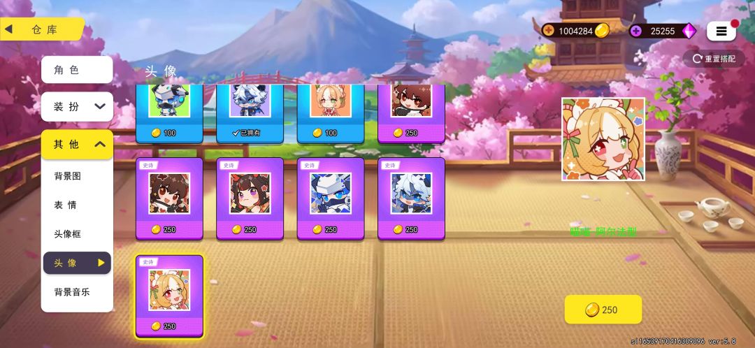 5.仓库内加入背景图、表情、头像框、头像内容,可以用金币兑换