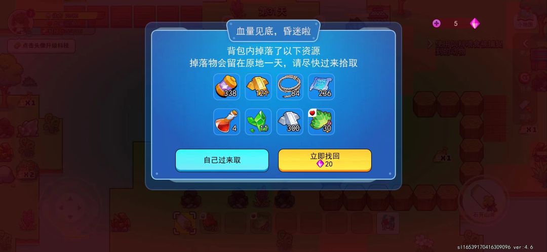 5.优化了死亡逻辑,现在正常死亡物品会掉落地上,可以自主过去拾取;Boss 战斗挑战失败还是只能消耗钻石找回掉落物