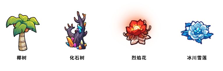 1.加入四种新的植物:椰树、化石树、烈焰花、冰川雪莲