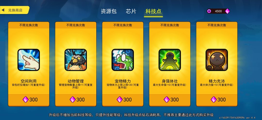 3.兑换商店新增了循环升级科技升级点兑换商品