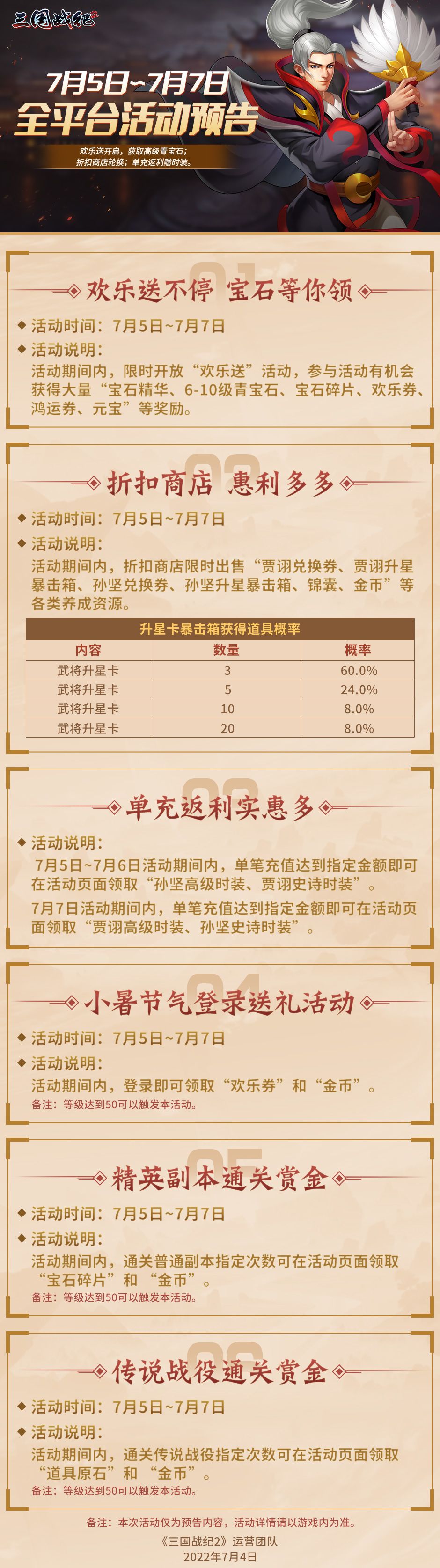 《三国战纪2》7月5日~7月7日全平台活动预告