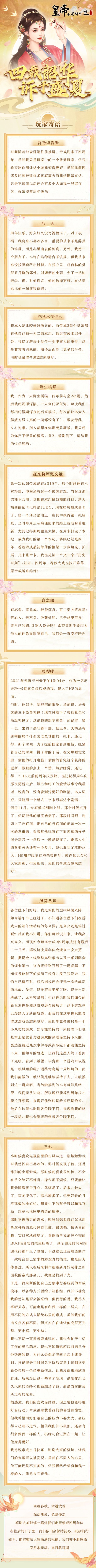 行文至此,感慨万千,正是这些镌刻于记忆深处的羁绊,才促成了帝成如今的模样,同时,为了庆贺《皇帝成长计划2》正式迎来了四周年庆,我们特地为圣上们准备了一些周年小福利,一同欢度庆~