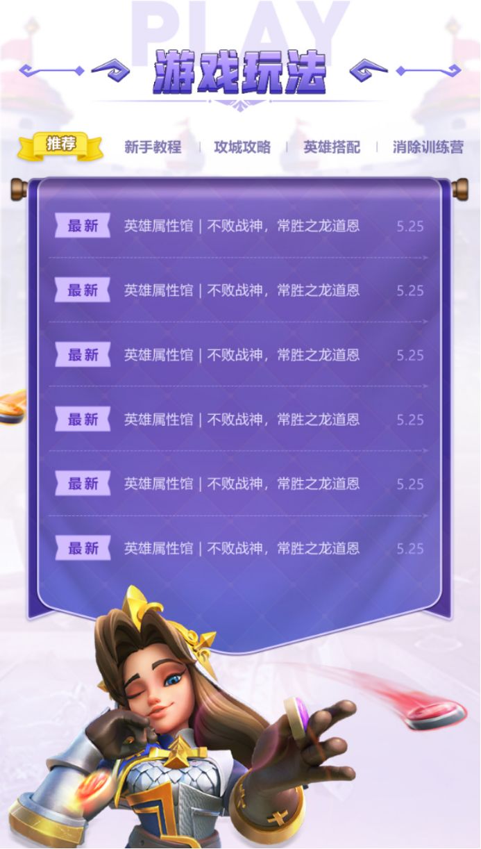 海量的游戏攻略打包提供,“新手教程”、“攻城攻略”、“英雄搭配”、“消除训练营”等资讯应有尽有!