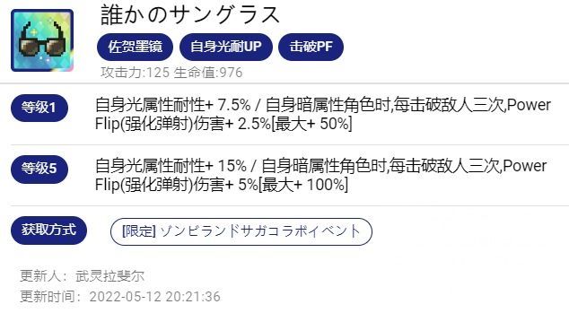 最后暗属性的某人的墨镜,这个武器要暖机满的话还是需要太多的小怪了,而且暗PF队伍也不是很常用来打各种副本,所以使用的地方就会比较少。