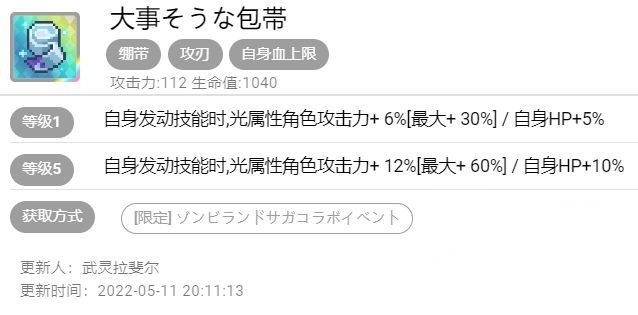 光属性武器看起来很重要的绷带,这个武器虽然辅助位置可用,但是需要开4次技能才能暖满。和机器人掉的浑身武器比起来也没有什么优势,只有高压情况下需要给王子等承伤角色增加HP才会带上武器或者珠子。