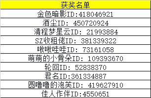 我们的新游预约活动第三期,已经圆满结束了!获奖名单请看截图同时评论留下您的联系QQ,我们会有客服同学联系你进行发奖。截止时间为本周五中午12点,届时如果还有未留下