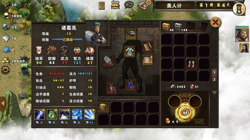 特技/深谋远虑:每回合会对两名敌人释放出此技能,如果被释放的单位身边1格内没有任何友军,则鲁肃会释放一次300%范围伤害