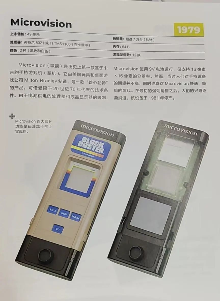 不过,创新也会伴随巨大风险,它所带来的超前概念可能会被技术限制,或者难被市场接受。1979年,Microvision作为史上第一款插卡带的掌机诞生。它显然是一款野心勃勃的产品,但当时的人们既没有手持产品的使用习惯,产品本身也受限于16x16像素的分辨率。产品在概念热潮退去后,便草草于1981年停产。