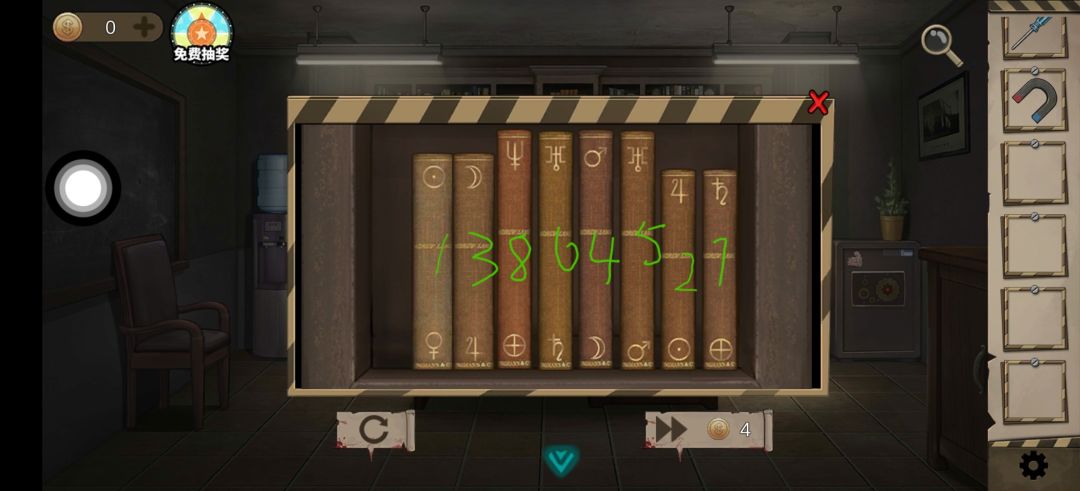 点右侧柜子 按照纸条 找455 柜子 完成小游戏