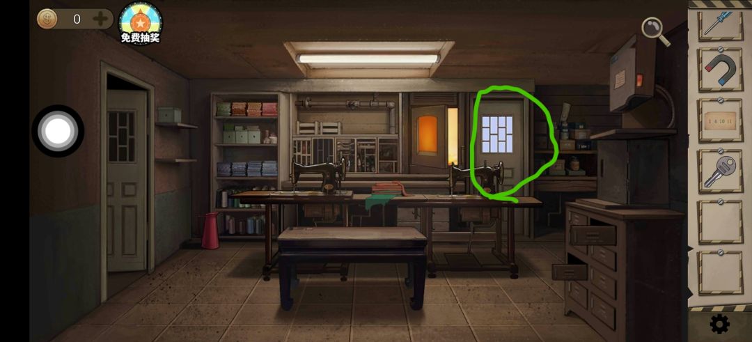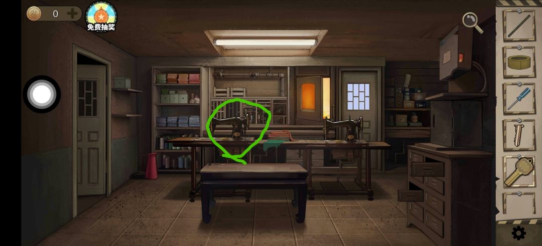 点击左侧缝纫机 用木棍 撬下 得滚轮