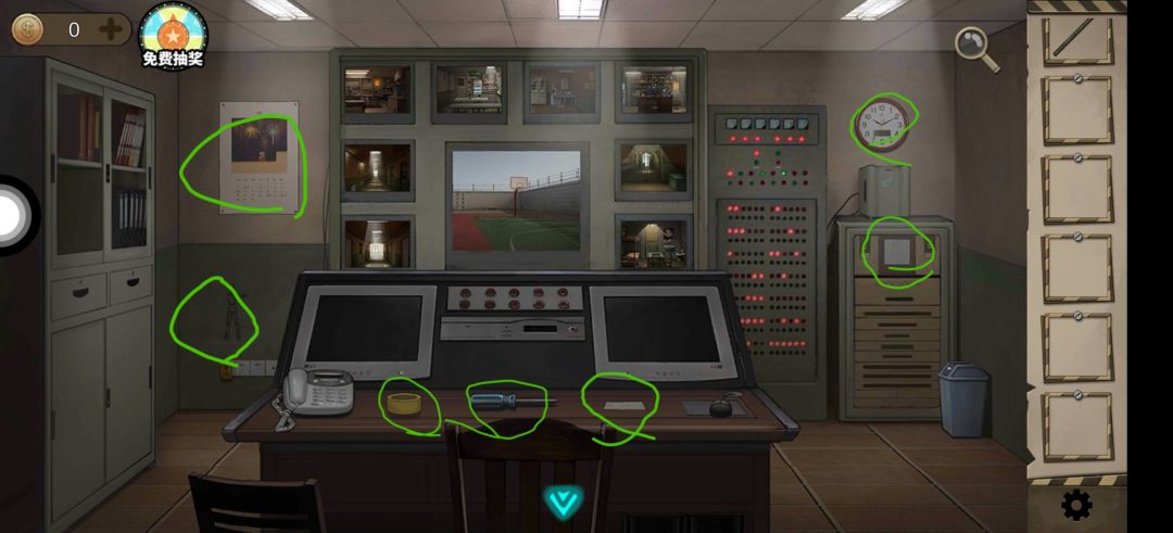 到监控室 用纸条密码开门