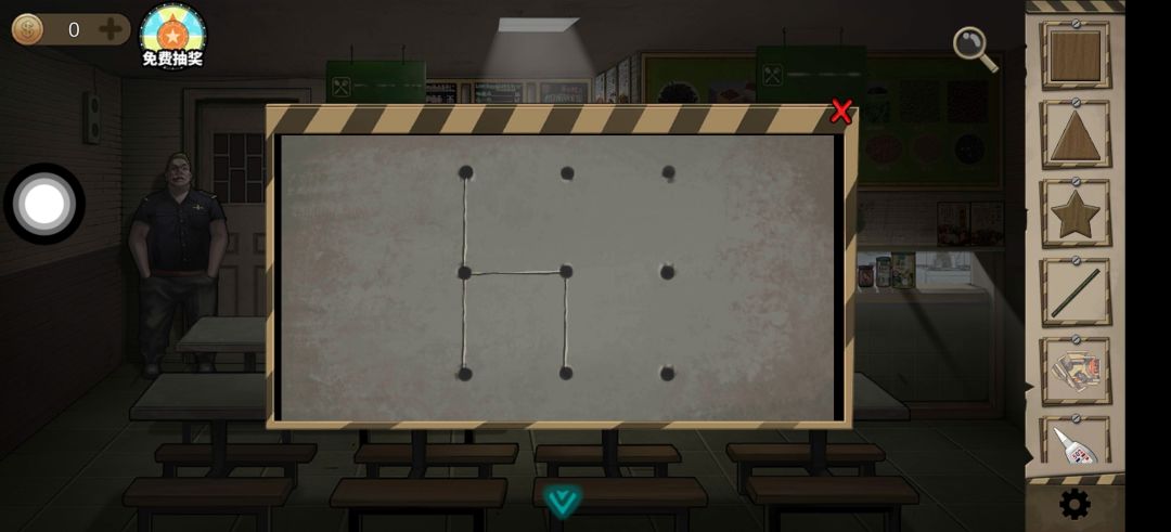 密码为餐厅长桌子上的图案(一笔连成 直接画h就行)