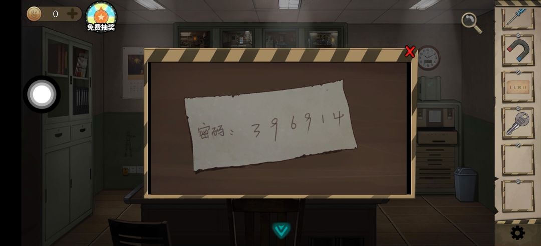 下一层密码为监控室桌上纸条(396914)