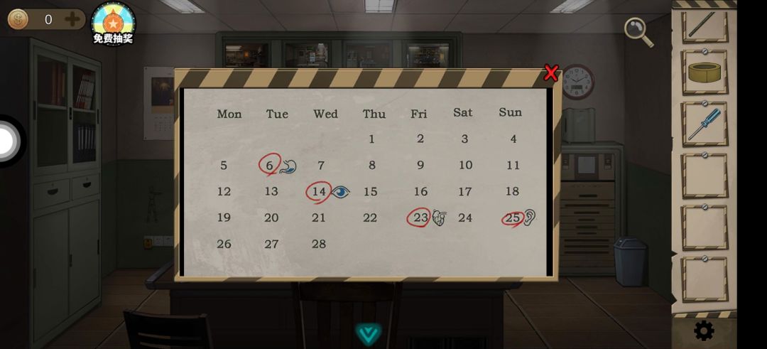 点左上角 日历得 禁闭室 开门密码(1425623)