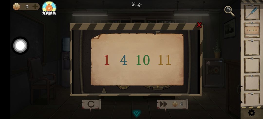点右侧柜子完成小游戏(11-4+4×1=33/3)得钥匙