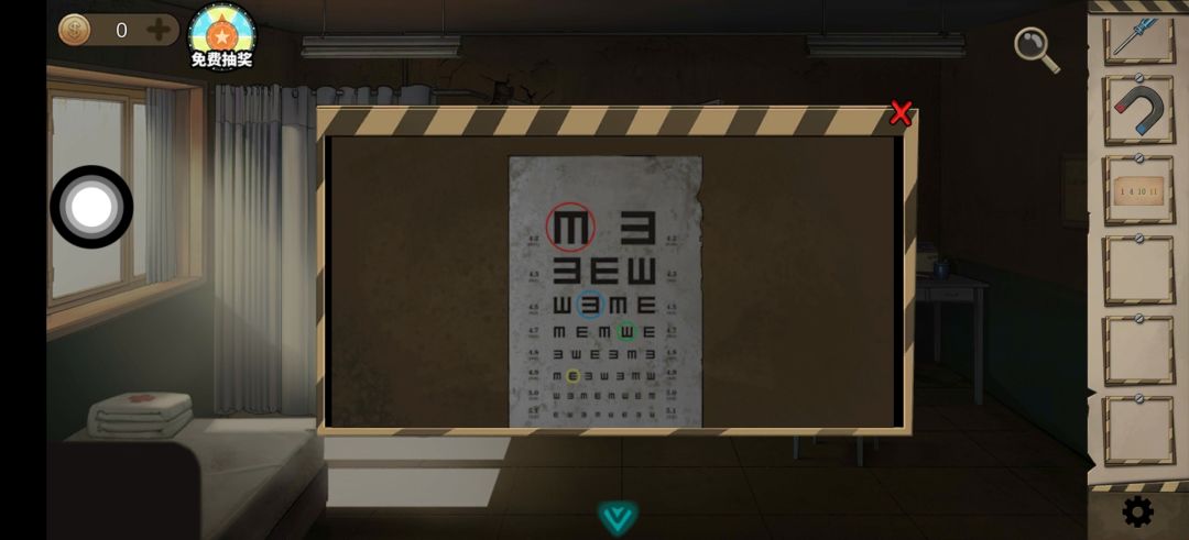 二层密码为医务室视力表(蓝左 红下 绿上 黄右)