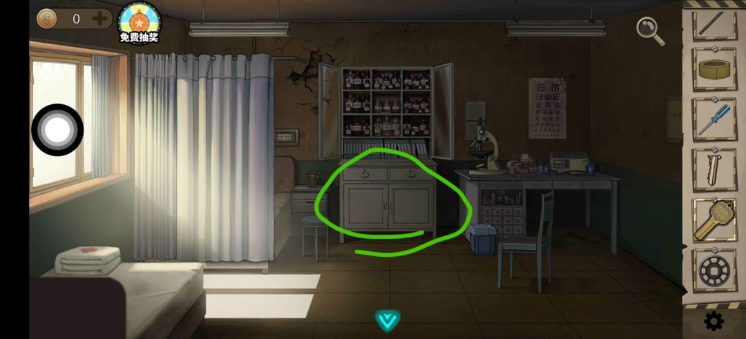 同医生对话后点击打开的书柜得 刀片