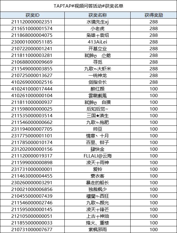 恭喜以下主公获得本次活动奖励,奖励会在7个工作日内发布,请注意查收