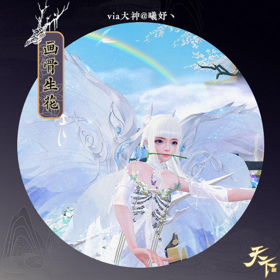 “白骨生花若若怜,水中画影般般梦。”身着这套【画骨生花】新时装的少侠们也太美了吧!雪发霜衣,轻撑一支侠骨香,清冷破碎美感完全被大家拿捏住了!