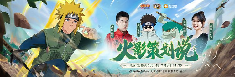 【节目福利】节目期间,参与虎牙火影策划说栏目直播间660148的专题互动抽奖活动,集“策划说5卡”即可赢取“波风水门[青年]”、火影手办、丰厚Q币等奖励!