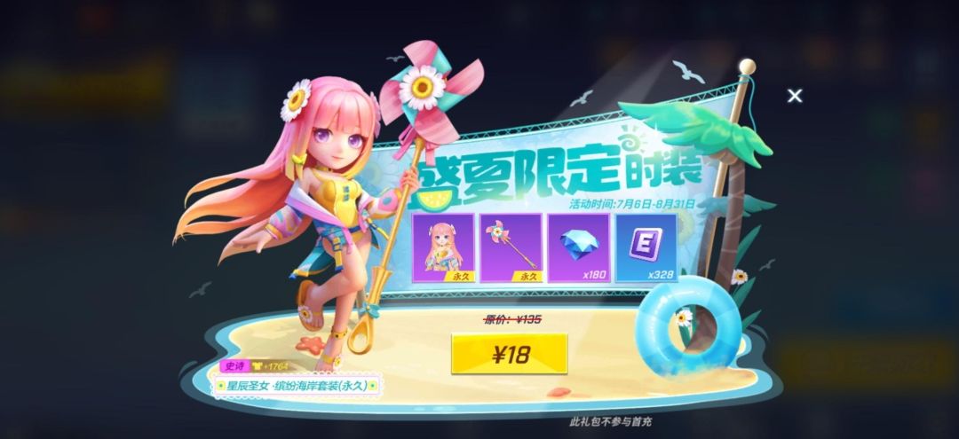 只需18元即可解锁星辰圣女·缤纷海岸套装以及钻石、点券和白金币~