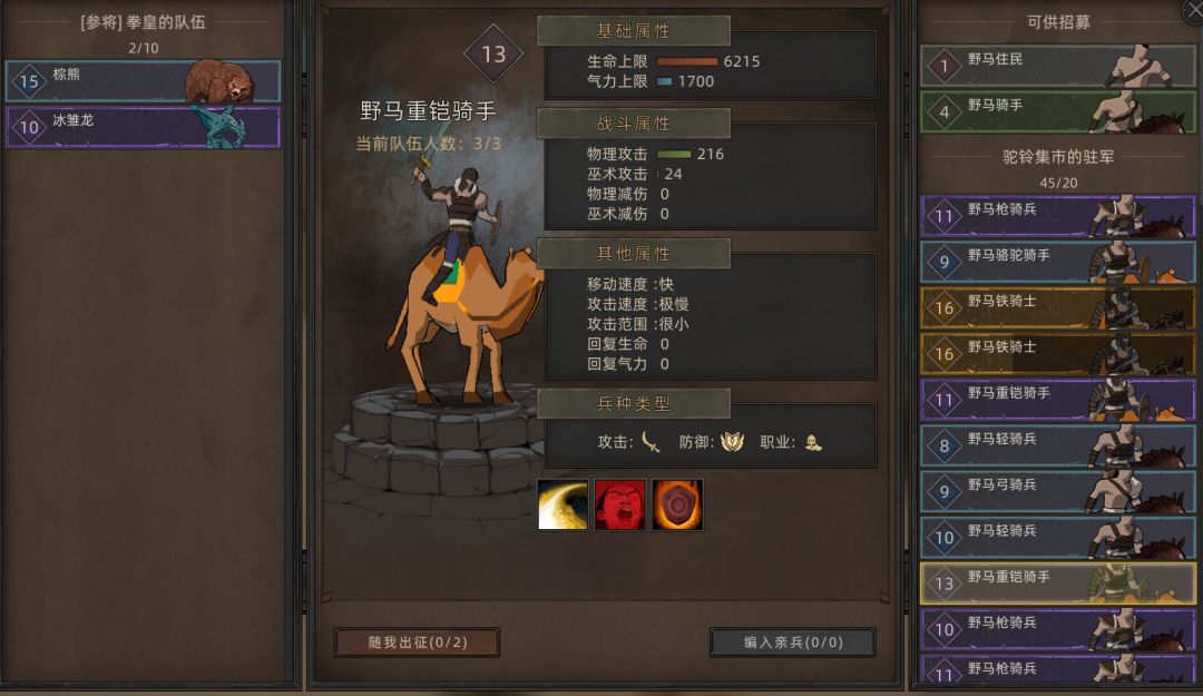 加入完后可以在驻军里面,想要哪个选哪个,建议拿野马重铠,14级以上最好,拿过来直接进阶就会变成自己的兵。