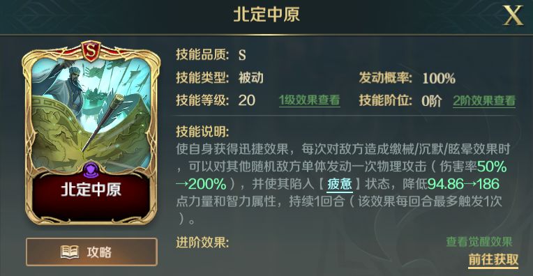 S级技能:北定中原、帕提亚战术、封狼居胥等。