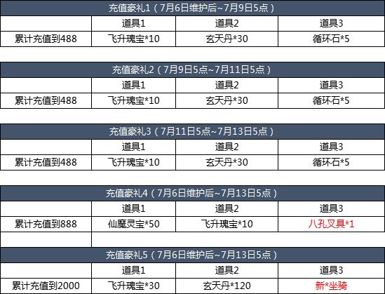 【活动简介】活动期间累计充值达到指定金额即可领取惊喜礼包!