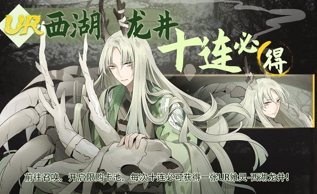 活动描述:活动期间,开启限购卡池,御侍大人可在商城界面使用幻晶石等道具兑换卡池专属道具,该卡池中UR飨灵-西湖龙井重返缇尔菈大陆。