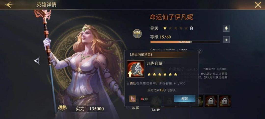 伊凡妮在前中后期都能担任资源采集队伍的主力,其优秀的兵力加速就算当挂件在英雄议会里也属于成产兵力的“BUFF大将”,除了进攻队,无论哪方面都有她的一席之地,建议前期入手后主力培养,中后期按需更换。
