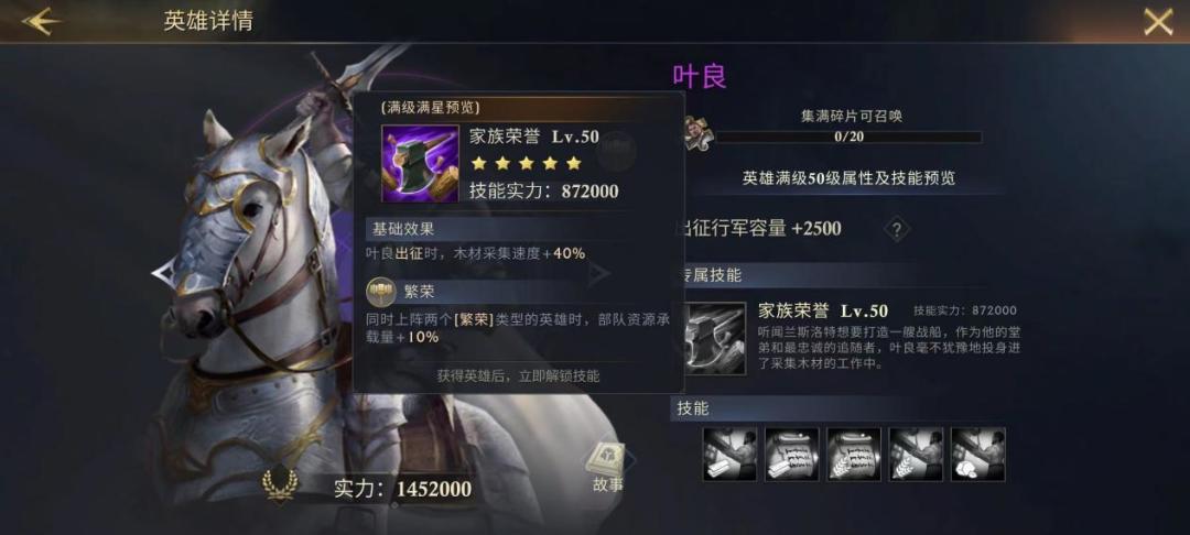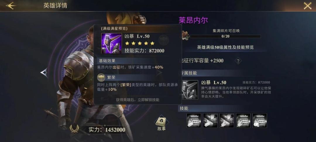 专属技能:基础效果提高领主的采集速度,“前期能最早、最稳获得的资源加速传说角色”。