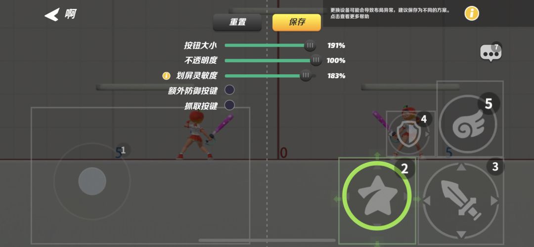 新手建议推荐用滑动模式,个别出招还是比较依赖的(刚开始可能不习惯,但这是进步很重要的一步)
