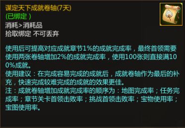 内含:谋定天下成就卷轴(7天)*1、神之防具打造书页*1