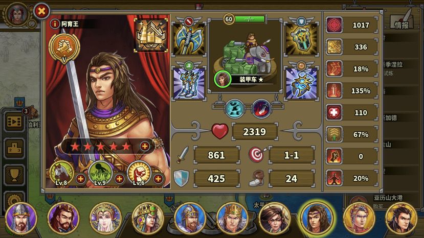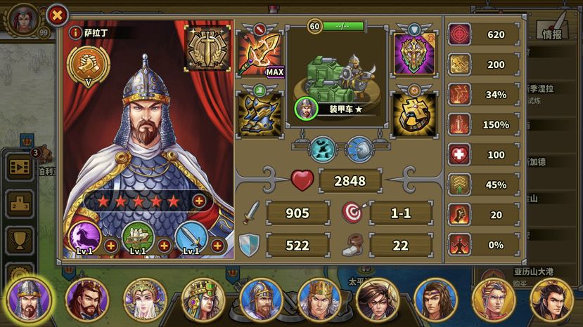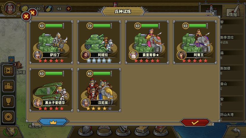 终于把骑5过了!每个兵种试炼都有那么一关,回合短,强度大,全清全占,对配置要求高,步6,炮7,骑5,弓8。面对这种关卡,我的建议先低星过,等配置提高后再回来补。比如骑5,我们可以先打完骑7拿到萨拉丁专属后再来打。
