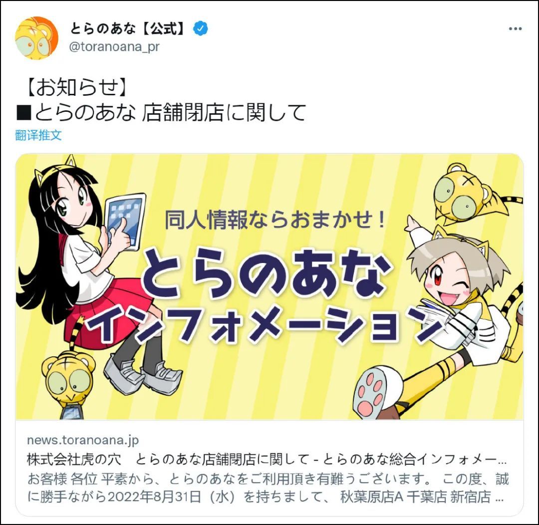 称因疫情影响,包括虎穴在秋叶原的最后一家店秋叶原店A,以及新宿店、千叶店、难波店、梅田店……即将于8月31日关闭,只留下了主营女性向同人的池袋店。