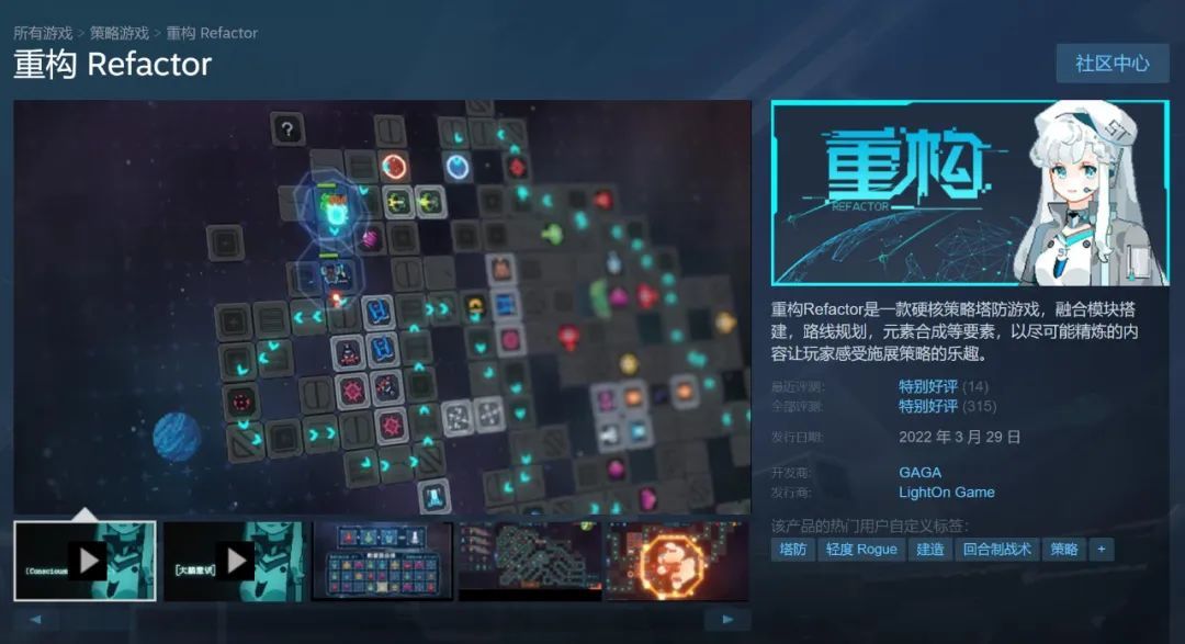 今天给大家推荐一款国产的塔防策略游戏,叫《重构Refactor》。游戏的基础机制类似War3上的RPG地图《宝石TD》,融合了模块搭建,路线规划,元素合成等要素。