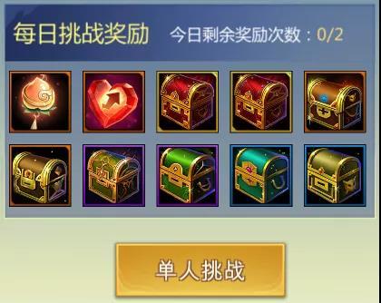 每日挑战奖励一天只有两次获得机会;挑战层数奖励为一次性奖励,领取后不会进行重置。