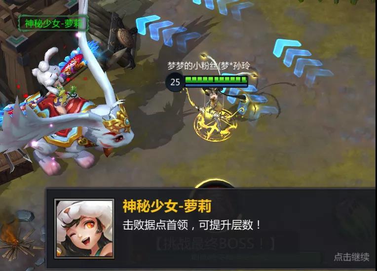 在关卡出生地与“神秘少女-萝莉”对话,即可传送至最终首领处。