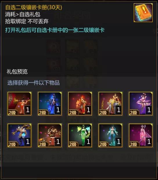 挑战层数每5层都可以获得一个挑战宝箱或者镶嵌卡册,打开就可以随机获得一张镶嵌卡。