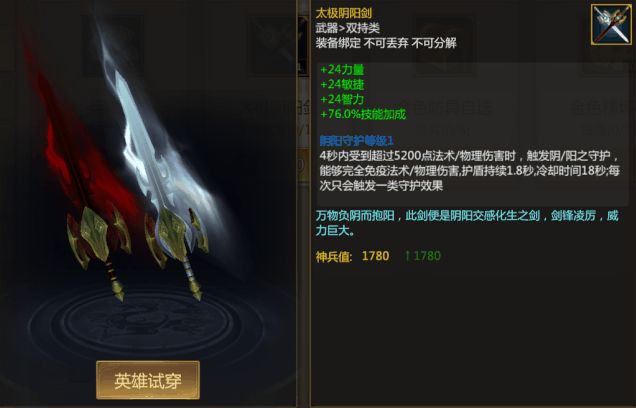 除了基础的兵粮卡、精炼石,这次特别有一把新武器加入兑换,那就是双持武器-太极阴阳剑