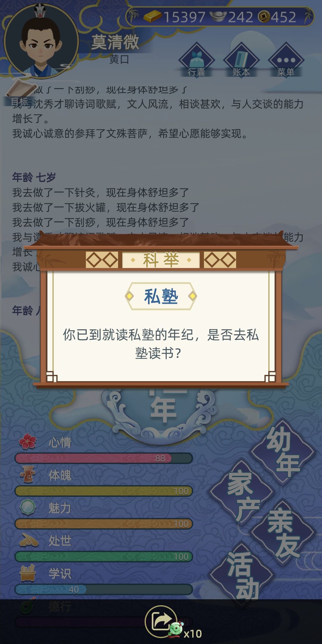 我就卡在这个画面了,退出重进的话就变成无业了,没办法上学堂了啊啊啊!