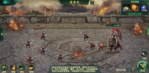 在虎牢关战役中,每天都会有5次的攻击次数,只取伤害最高的一次来计算排名,也可以消耗金币来购买次数,但是要达到一定的等级才可以参加,挑战三国第一战神当然需要有足够的实力才能挑战他喽,每周一他都会更换不同的技能,达到一定的伤害,会获得悬赏奖励有,银币、将魂、军勋,悬赏奖励会计算最高的伤害来判断,也可以使用扫荡,扫荡伤害为本周最高的伤害,不会消耗攻击次数哦。