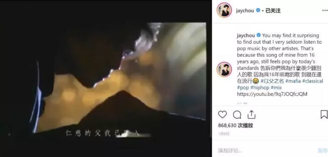 歌曲本身的素质,变成了最不重要的那部分。周董年初自己也发了一条instagram动态,“告诉你们我为什么很少听别人的歌因为我16年前写的歌到现在还在流行”——这大概也能用来解释为什么他依然是那个“顶级流量”。