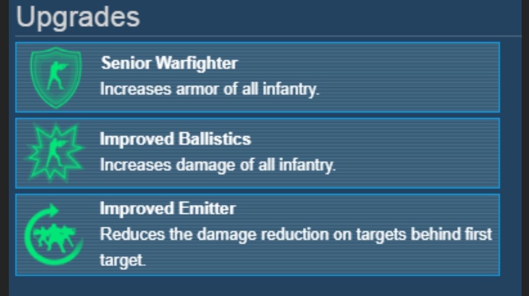 2.升级步兵的速度和护甲,使之拥有移动射击能力