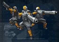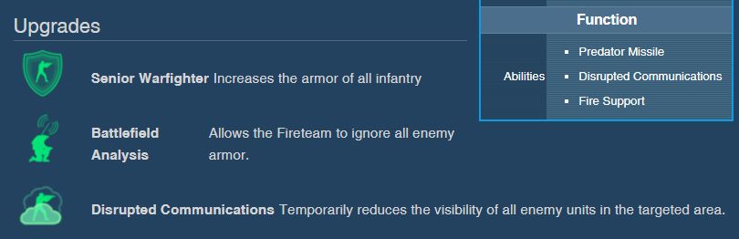 火力小组是欧盟的战地火力支援小组,可以通过照射仪器为捕食者导弹提供定位,为其他部队提供火力支援技能,干扰敌方通讯。他们身着轻型护甲,没有武器,需要保护。
