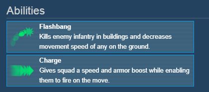 突击队是“水星红”将军专属的精锐步兵,配有机枪和闪光弹,可以有效对付步兵和建筑里的驻军。